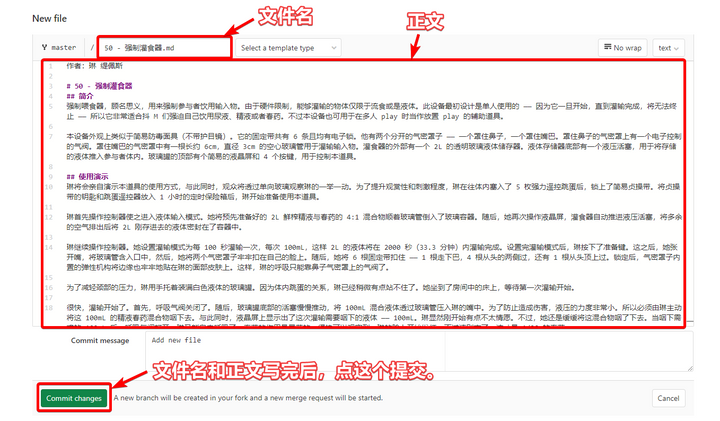 这之后,你需要开启一个合并请求,即请求琳将你编写的文章加入到《可穿戴科技》中。