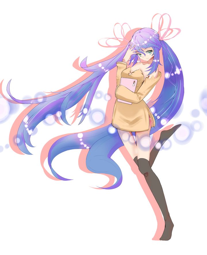 画师的碎碎念:晴梦慧的形象是三人中我第一个画的,其本人对形象没什么要求让我随意反而让我有点苦恼。几个月不碰画笔之后突然提笔,说实话我还是有点拿不定主意,但是冥冥之中就想把她画得神秘,冰冷而又充满智慧,所以给她设计了蓝色的长发,但是她曾经也是一个温柔,热心又善解人意的大姐姐,所以衣服使用了暖色调。一开始的设计是裸足来的,不过在琳的要求下穿上了过膝袜。光斑一开始是没有的,稍微加上一点发现效果还不错,就多用了点,现在看来有些太多了。