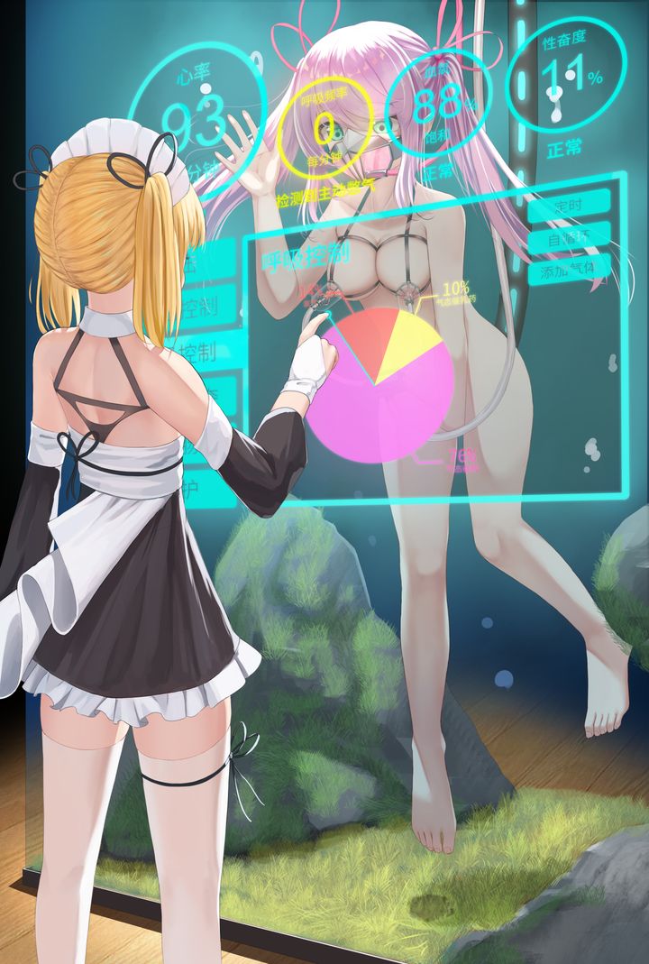此时,我感觉自己已经完全坚持不住了。我的脑子里面充满了色情的想法,无论是体内一不留神就会注意到的按摩棒和阴道壁的轻微摩擦,或是乳头和阴蒂上挂着的跳蛋和重物随着重力的稍稍晃动都会给我带来极强的刺激。我瞟了一眼腰间的春药罐,那原本接近全满的罐子现在只剩下约 1/3 的液体了。