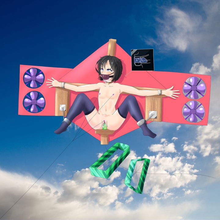 此时,风筝的海拔已经很高了。琳的方向也从朝前变成了朝下。尽管身体各个部位被金属拘束器牢牢地固定住了,但被迫看着身体下方数百米的高空,琳依旧害怕地瑟瑟发抖。